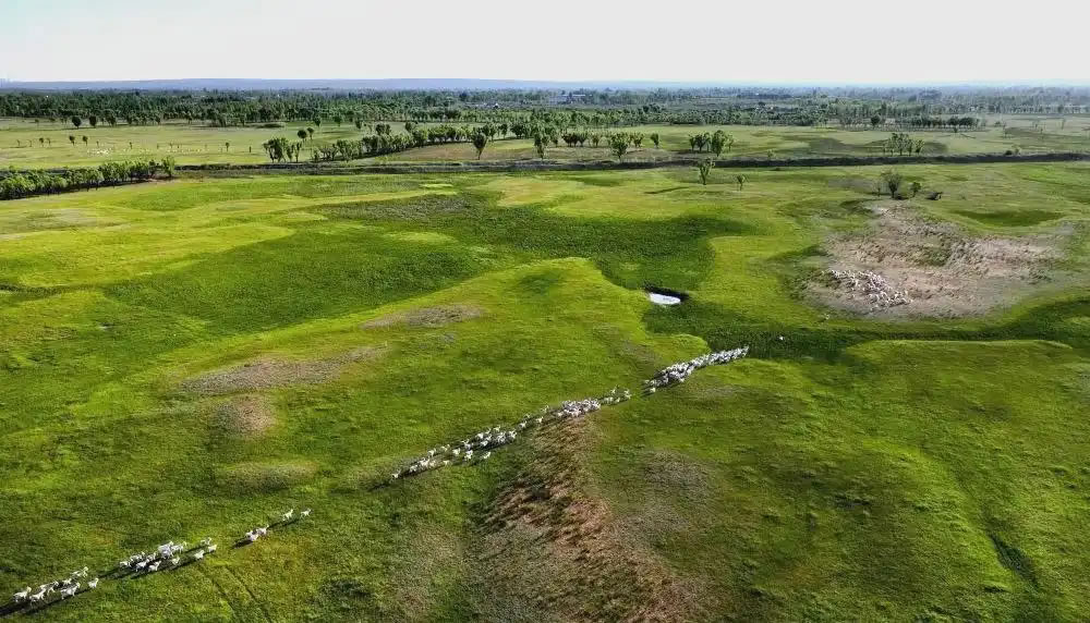 爾林兔草原地處鄂爾多斯高原與毛烏素沙漠過(guò)渡地帶,位于紅堿淖風(fēng)景名勝區(qū)東側(cè)。該區(qū)域通過(guò)生態(tài)治理實(shí)現(xiàn)從風(fēng)沙草灘區(qū)向天然牧場(chǎng)的轉(zhuǎn)變,形成面積達(dá)70平方公里的草原景觀。建有萬(wàn)畝草原、千畝花海等核心景觀,開發(fā)了騎馬馳騁、草原露營(yíng)等特色旅游項(xiàng)目。