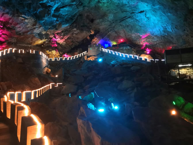 - 核心景觀:黃金溶洞(約2000米,鐘乳石千姿百態(tài),常年18℃清涼)、明代大理石長城(野長城段,山頂古炮臺遺址)。