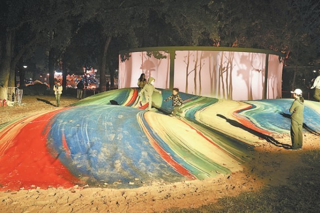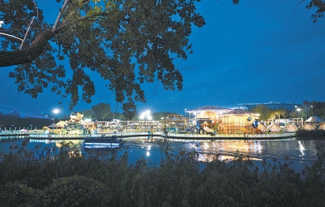 阿派朗創(chuàng)造力星球游樂設(shè)施在燈光輝映下活力盡顯。