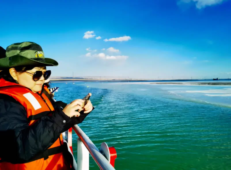 10月14日,由中共海西州委宣傳部主辦、西海都市報(bào)社承辦的“紅杞風(fēng)光別樣美 ”活動(dòng),走進(jìn)海西蒙古族藏族自治州烏蘭縣,研學(xué)團(tuán)隊(duì)來到茶卡鹽湖,乘坐游船觀光,湖面上駛來的大型運(yùn)鹽船讓外省記者及學(xué)生不由感嘆:沒想到“天空之鏡”還有另外一種獨(dú)特景致。湖面上駛來的大型運(yùn)鹽船吸引了研學(xué)團(tuán)隊(duì)成員的目光。采鹽船正在鹵水中作業(yè),發(fā)出低沉的轟鳴,空氣中彌漫著咸潤的氣息。研學(xué)的同學(xué)通過實(shí)地觀察鹵水的蒸發(fā)、結(jié)晶過程,將課本上的地理、化學(xué)知識(shí),與這片壯麗的現(xiàn)實(shí)場(chǎng)景融會(huì)貫通。
