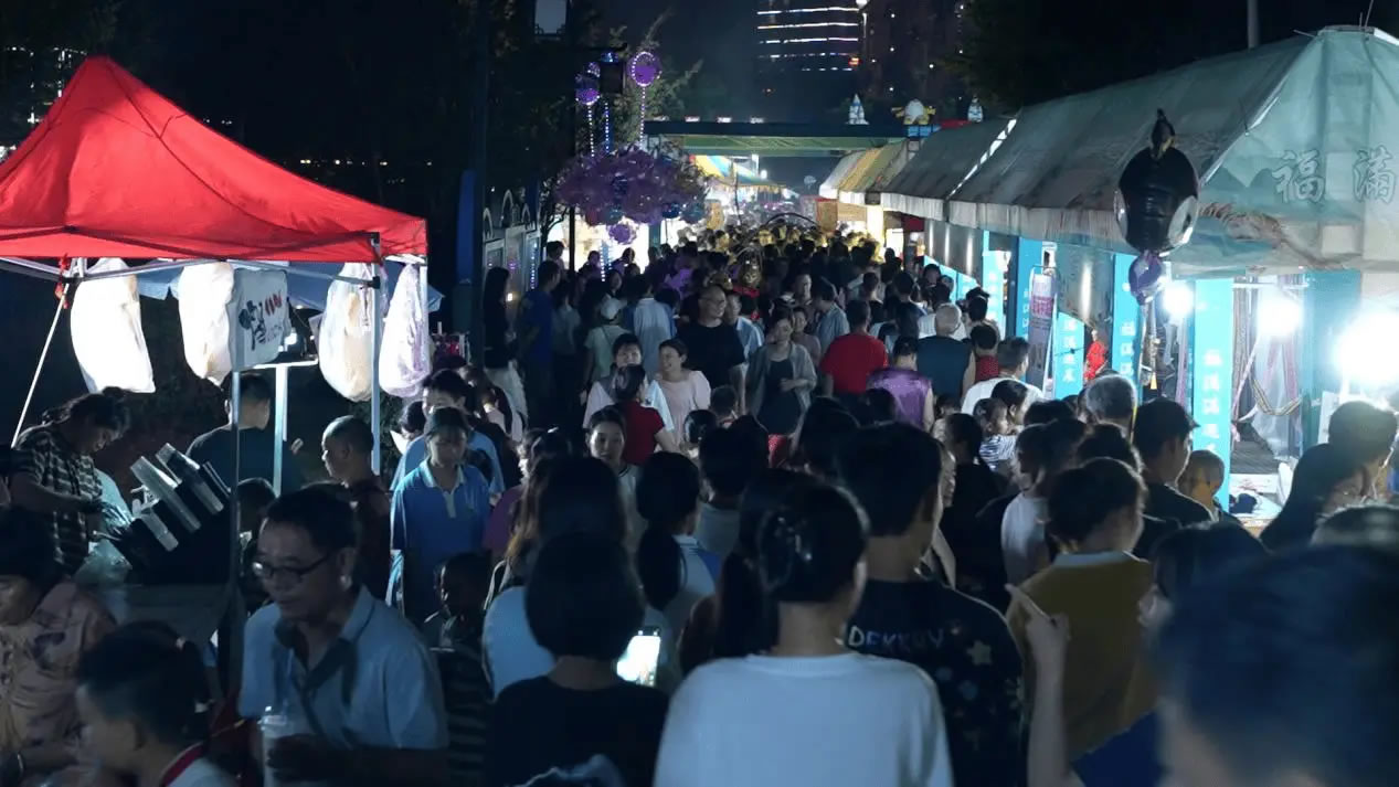 活動(dòng)現(xiàn)場,產(chǎn)品展銷、非遺展演、親子游樂、特色美食四大板塊同步開啟,非遺火壺、浪漫銀河冷焰瀑布秀、非遺打鐵花等輪番上演;顒(dòng)首晚便吸引市民游客超5000人次,叫賣聲、音樂聲交織,摩肩接踵的人群中涌動(dòng)著消費(fèi)熱潮。